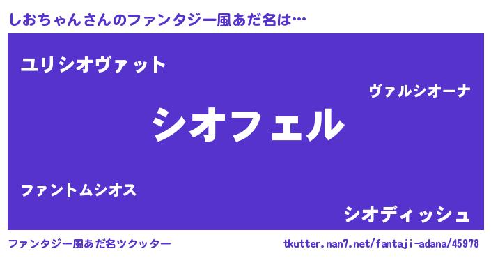 | 男性向けラノベタイトル風あだ名 | 『しおちゃんの憂鬱』 |