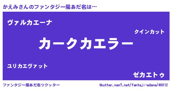| 男性向けラノベタイトル風あだ名 | 『緋弾のカエミ』『はたらくかえみさま!』 |