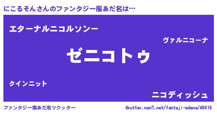 | ポケモン風あだ名 | 『ニコセウス』『ニコゴンZ』 |