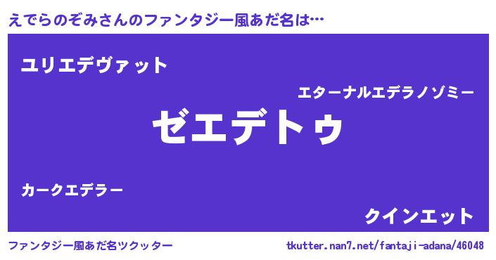 | 意味不明あだ名 | 『自称えでらのぞみ』 |