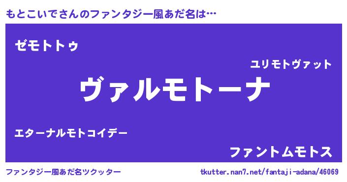 | 意味不明あだ名 | 『住所不定無職もとこいで(95歳)』 |