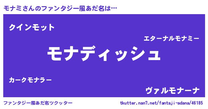 | 意味不明あだ名 | 『永久保存モナミ』『モナミフォーエバー』 |