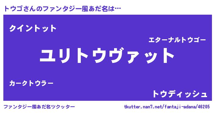 | 男性向けラノベタイトル風あだ名 | 『転生したらトウゴだった件』 |