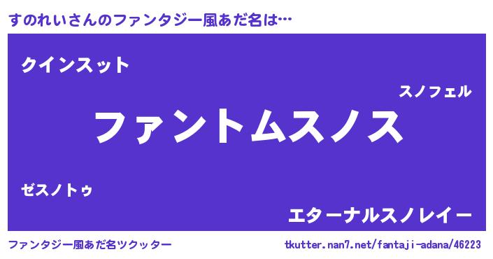 | 男性向けラノベタイトル風あだ名 | 『すのれいの嫁は女の子じゃないと思った?』 |
