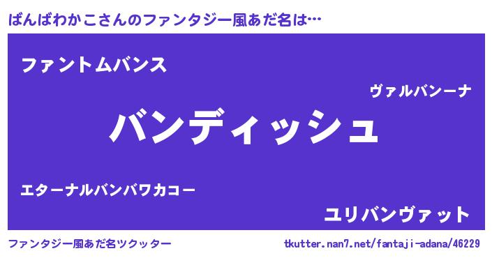| ヘコむあだ名 | 『ばんばわかこ(爆)』『ばんを』 |