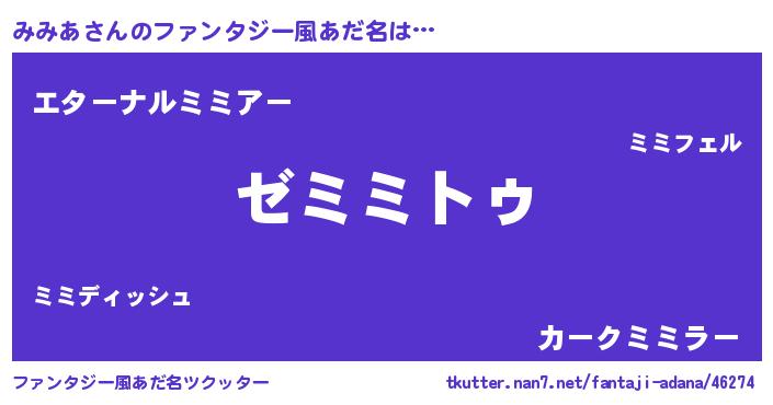 | 女子向けラノベタイトル風あだ名 | 『闇のみみあ』『みみあの雑貨屋さん』 |