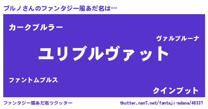 | 男性向けラノベタイトル風あだ名 | 『ブルノ~年齢イコール彼女いない歴の魔法使い~』 |