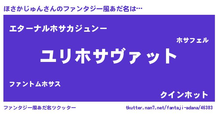 | 男性向けラノベタイトル風あだ名 | 『ほさかじゅん~年齢イコール彼女いない歴の魔法使い~』 |