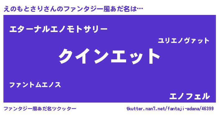 | 伝説のあだ名 | 『魔王と互角に渡り合う錬金術士えのもとさり』 |