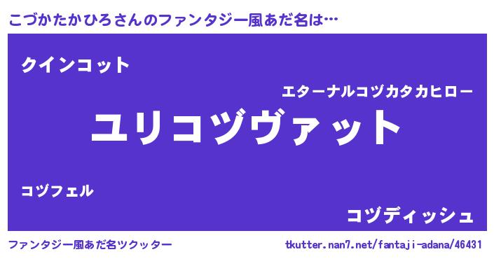 | 男性向けラノベタイトル風あだ名 | 『転生したらこづかたかひろだった件』 |