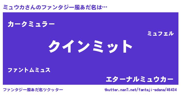 | 女子向けラノベタイトル風あだ名 | 『ミュウカ恋絵巻』『ミュウカ伯爵の花嫁』 |