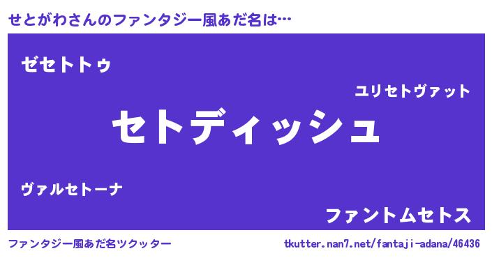 | 男性向けラノベタイトル風あだ名 | 『せとがわに滅ぼされるだけの簡単なお仕事です』 |