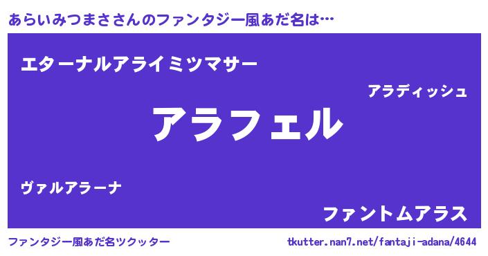 | 男性向けラノベタイトル風あだ名 | 『あらいみつまさの憂鬱』 |