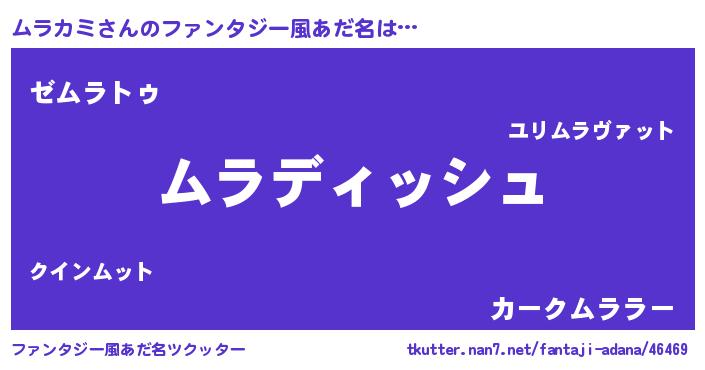 | 女子向けラノベタイトル風あだ名 | 『ムラカミの契約王妃』『ムラカミ恋絵巻』 |