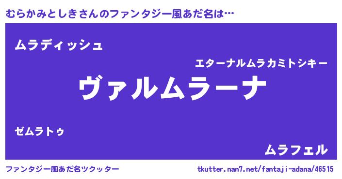 | 女子向けラノベタイトル風あだ名 | 『乙女ゲームの破滅フラグしかない悪役むらかみとしきに転生してしまった…』 |