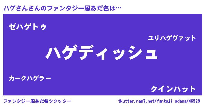 | ヒーロー風カッコイイあだ名 | 『ネオハゲサン』『超時空戦士ハゲサン』 |
