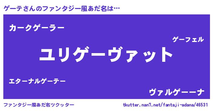 | 男性向けラノベタイトル風あだ名 | 『ゲーテスレイヤー』 |