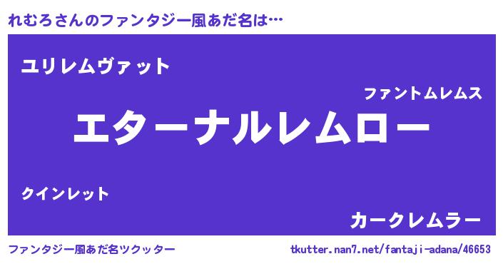 | ヒーロー風カッコイイあだ名 | 『ウルトラれむろマン』『黄金騎士レム』 |