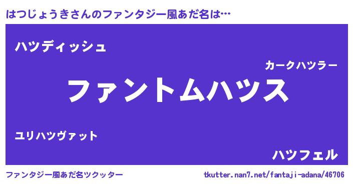 | ヒーロー風カッコイイあだ名 | 『銀牙騎士ハツ』『ネオハツジョウキ』 |