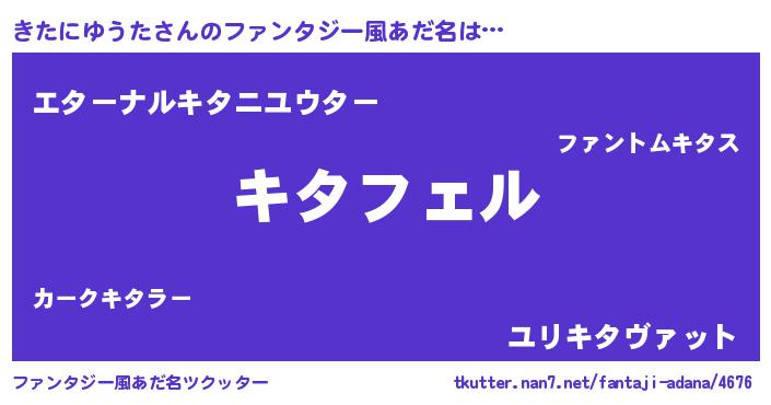| 男性向けラノベタイトル風あだ名 | 『キタニユウタアートオンライン』 |