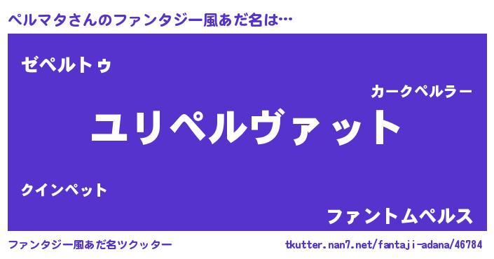 | 男性向けラノベタイトル風あだ名 | 『ペルマタ~年齢イコール彼女いない歴の魔法使い~』 |