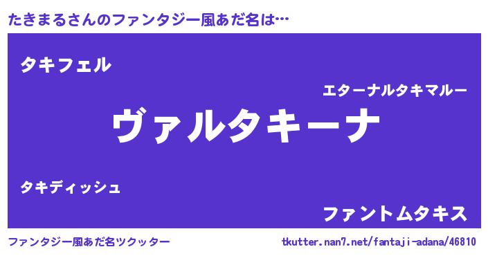| 男性向けラノベタイトル風あだ名 | 『この素晴らしい世界にたきまるを!』 |