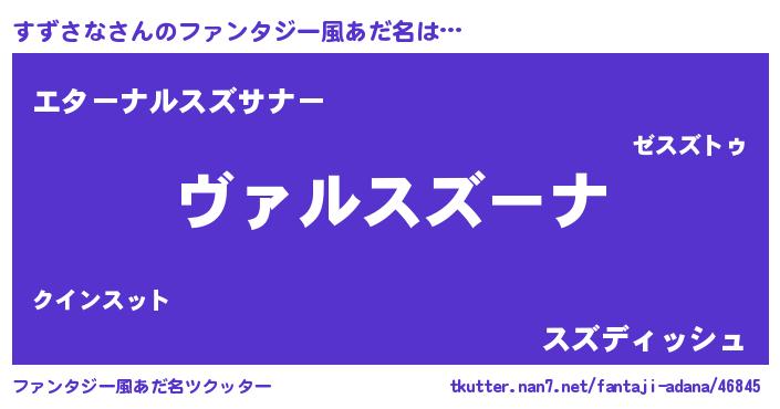 | 女子向けラノベタイトル風あだ名 | 『悪役すずさなに転生したようですが、知った事ではありません』 |
