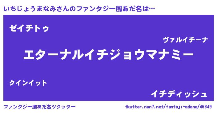 | 意味不明あだ名 | 『いちじょうまなみフォーエバー』 |