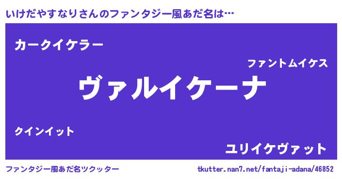 | 男性向けラノベタイトル風あだ名 | 『魔弾の王といけだやすなり』 |
