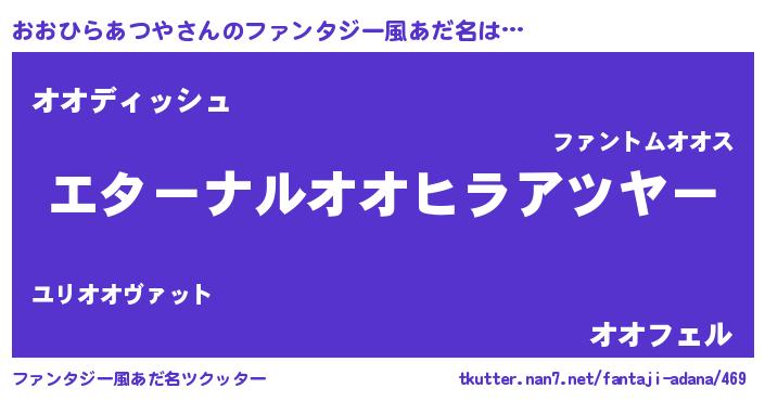 | 男性向けラノベタイトル風あだ名 | 『おおひらあつやに滅ぼされるだけの簡単なお仕事です』 |