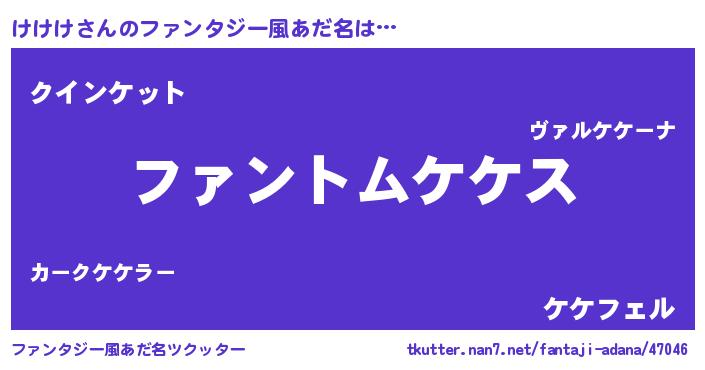 | ヒーロー風カッコイイあだ名 | 『炎刃騎士ケケ』『正義の使者けけけ』 |