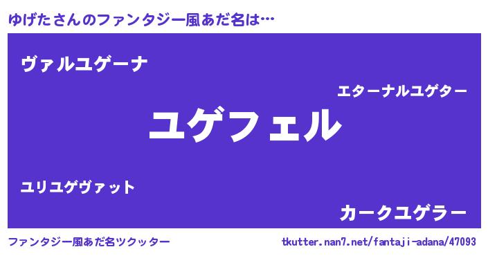 | 男性向けラノベタイトル風あだ名 | 『ユゲタアートオンライン』 |