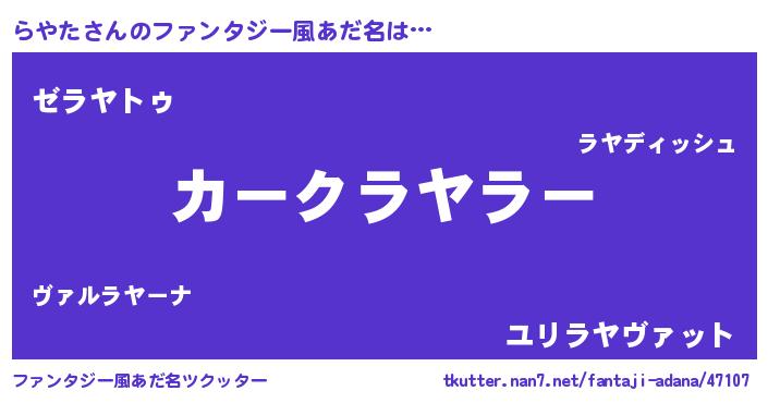 | ヘコむあだ名 | 『らやた(苦笑)』『らやにー』 |