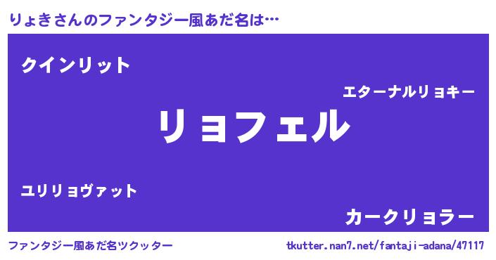 | 男性向けラノベタイトル風あだ名 | 『リョキアートオンライン』 |