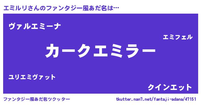 | 男性向けラノベタイトル風あだ名 | 『うちのエミルリが世界を掌握している!』 |