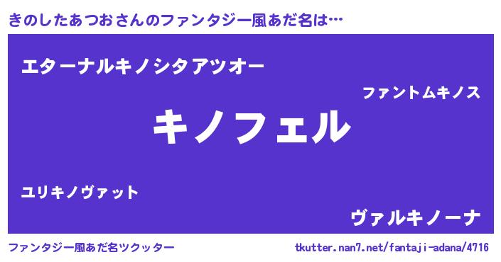 | 男性向けラノベタイトル風あだ名 | 『キノシタアツオアートオンライン』 |