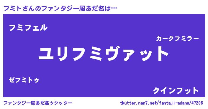 | 男性向けラノベタイトル風あだ名 | 『フミトスレイヤー』『フミトの憂鬱』 |