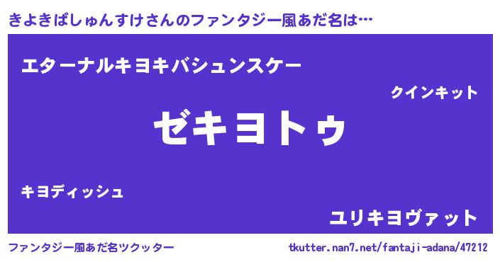 | 男性向けラノベタイトル風あだ名 | 『Re:きよきばしゅんすけから始める異世界生活』 |
