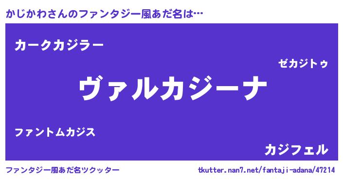 | 男性向けラノベタイトル風あだ名 | 『魔弾の王とかじかわ』『かじかわの憂鬱』 |