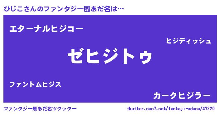 | 意味不明あだ名 | 『自称ひじこ』『ひじこフォーエバー』 |