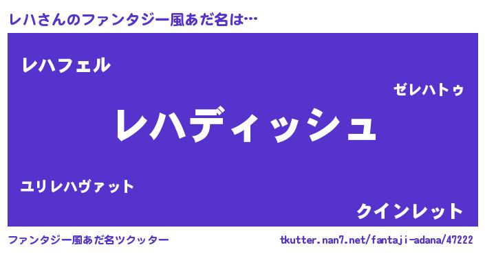 | ヘコむあだ名 | 『レハ(笑)』『レハふぇ~』『レハお』 |