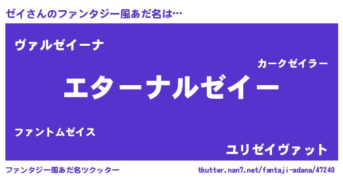 | 男性向けラノベタイトル風あだ名 | 『はたらくゼイさま!』『ゼイスレイヤー』 |