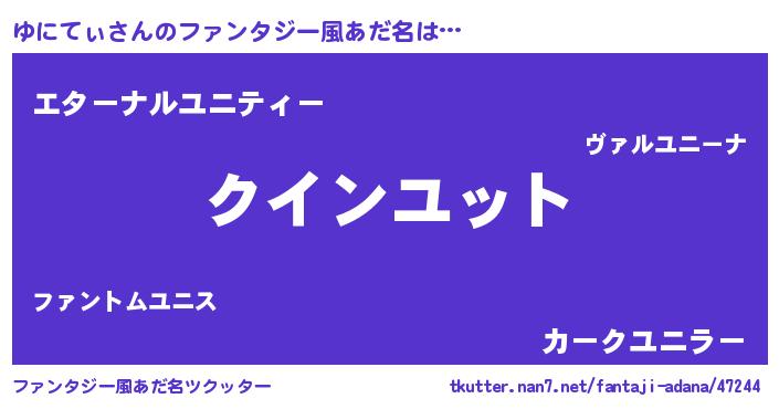| 伝説のあだ名 | 『人々から恐れられる錬金術士ゆにてぃ』 |