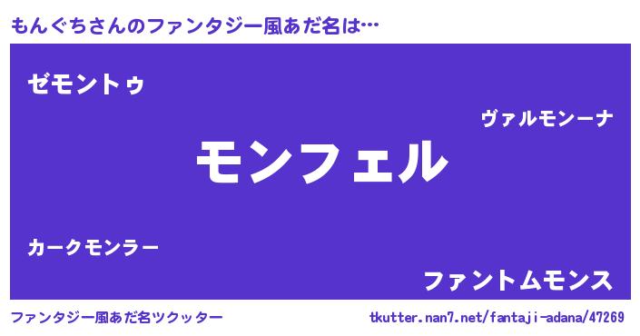 | ヒーロー風カッコイイあだ名 | 『スーパーモングチ』『幻影騎士モン』 |