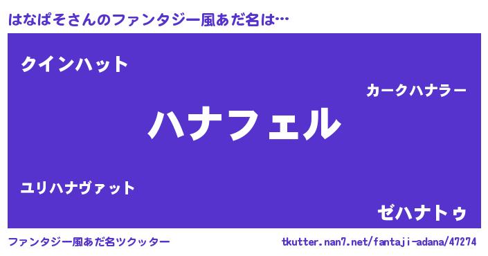 | ヘコむあだ名 | 『はなふぇ~』『はなぱそ(震え声)』 |