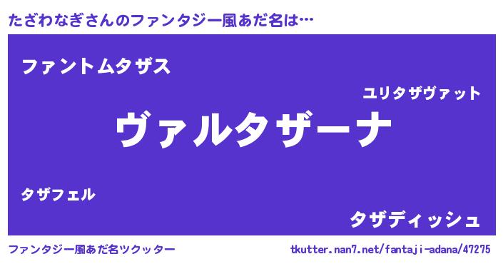 | 意味不明あだ名 | 『住所不定無職たざわなぎ(65歳)』 |