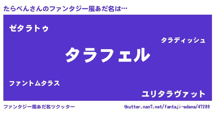| 男性向けラノベタイトル風あだ名 | 『たらぺんの憂鬱』 |