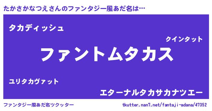 | ポケモン風あだ名 | 『ヒタカサカナツエ』『ゼニタカ』 |