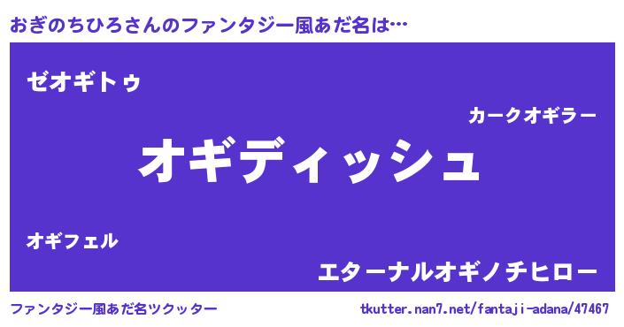 | ヒーロー風カッコイイあだ名 | 『ネオオギノチヒロ』『仮面オギダー』 |