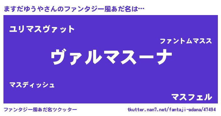 | 男性向けラノベタイトル風あだ名 | 『この素晴らしい世界にますだゆうやを!』 |